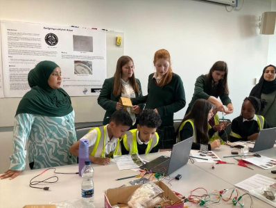 On Monday 22nd April, 5 of our year 10 students represented our school at UCL as part of their World Earth Day event. Our students confidently presented their progress with our jellyfish-inspired robot that we are designing to help remove plastic waste from waterways and oceans to KS2 primary school children. Our students also ran 2 workshops helping the younger students code and build simple ‘inchworm’ robots from cardboard using micro:bits and wires.